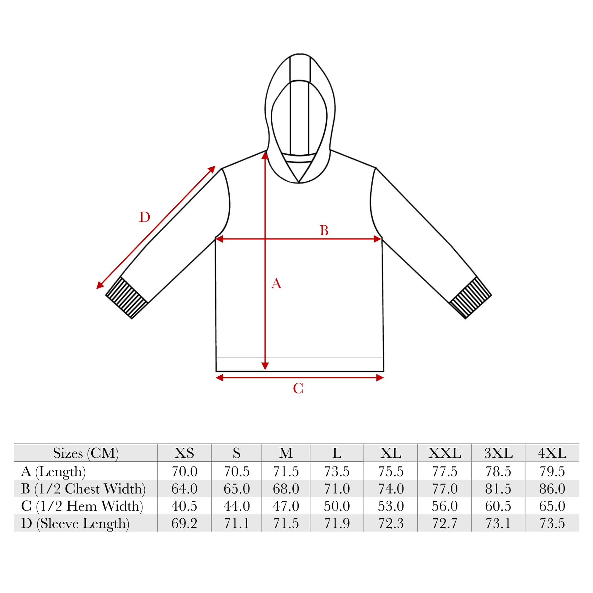 See size guide for measurements - please note that these are UK sizes and it is an oversized hoodie, so please double check the measurements as you may need to order a size down for a true-to-size fit.